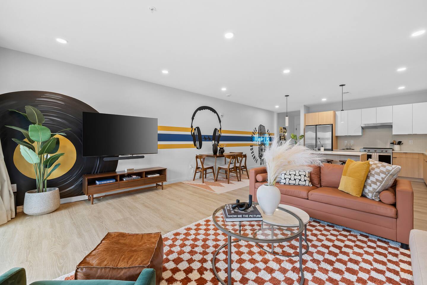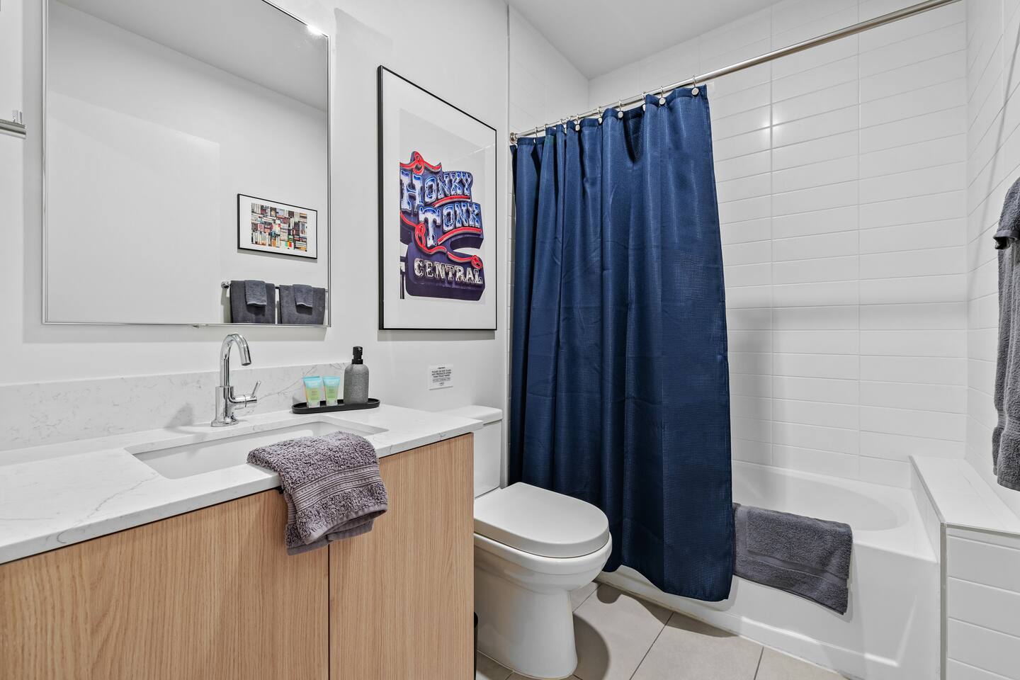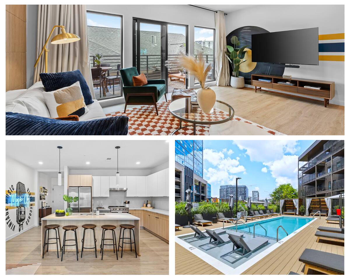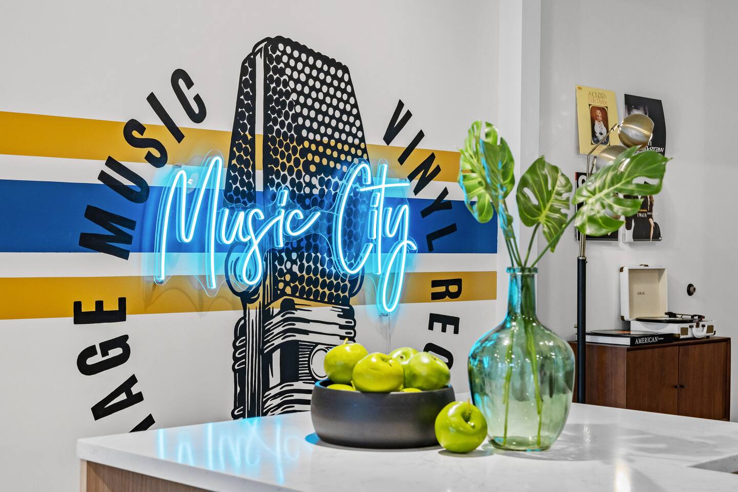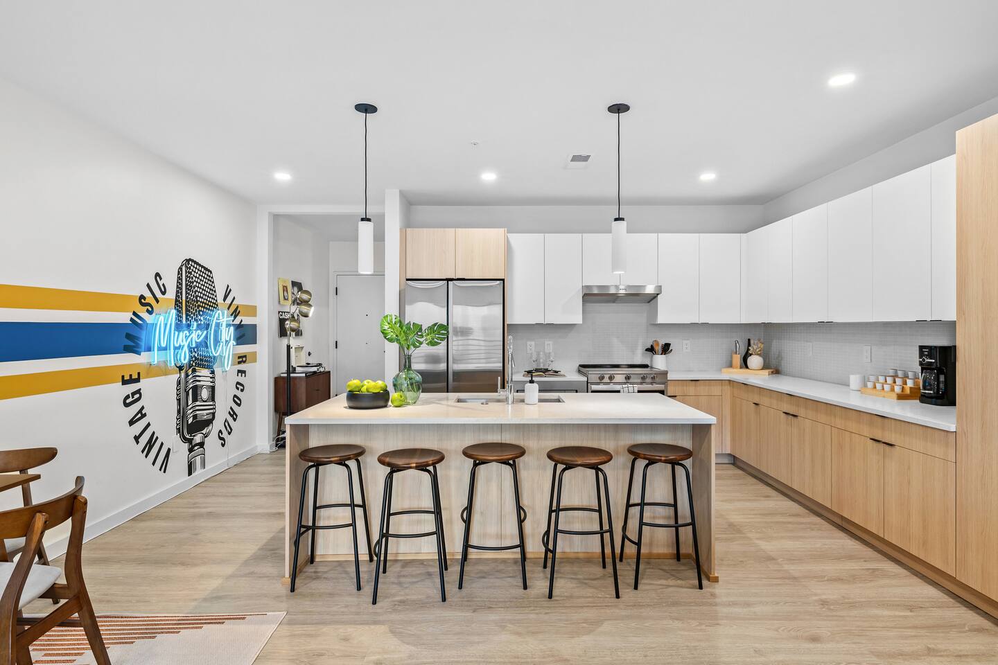 Stay in our beautiful 1,200 sq ft two bedroom, two full bathroom, luxury condo in the heart of downtown, close to everything! Professionally designed with a focus on style, comfort and Nashville's vibrant music scene. Your comfort is our priority. We provide all the amenities you need to feel at home. → Bedroom 1: King Bed w/ connected bathroom with dual vanities, spacious shower → Bedroom 2: Queen Bed w/ full bathroom just outside the door → Two Sleeper Sofas with full size mattresses in living room → Queen-size air mattress available for extra sleeping space → Black-out curtains throughout → Large Walk-in Closet in primary bedroom → Second bedroom hanging closet space located above washer/dryer → Bathrooms stocked with toiletries/hair dryers → Large private balcony with two seating areas → Kitchen stocked with essentials → Coffee bar → Huge 8 ft. quartz island with 5 barstools → Dining table with 4 chairs → Washer/Dryer in-unit → Cleaning Supplies → Iron / Ironing Board / Clothing Steamer / Hangers → 3 Smart TVs in living room (65”), primary bedroom (55”), and second bedroom (50”) → High-Speed WiFi over 600 Mbps Guest access & building amenities: ★ Outdoor pool ★ Courtyard with fire pits, seating areas, BBQ grill and ping pong table ★ Gym with Peloton bikes, dumbbells, weight machine, tread mills, and yoga area ★ FREE Gated Parking (49 spots first-come first serve, +30 additional paid parking available - ask for our discount code!) ★ FREE, on-site luggage storage available 10am-4pm, Thursday-Sunday ★ Lounge and co-working space ★ On-site building manager ★ On-Site 24-hour Security Just a short walk or ride to: ~0.7 Miles - Broadway & Honky-Tonks ~0.7 Miles - The Gulch (trendy shopping, amazing restaurants and bars) ~0.7 Miles - Bridgestone Arena ~1.2 Miles - Nissan Stadium ~0.6 Miles - Country Music Hall of Fame ~0.4 Miles - Music City Convention Center ~0.8 Miles - Ryman Auditorium ~0.8 Miles - Ascend Amphitheater ~0.5 Miles - Frist Art Museum ~0.5 Miles - What Lifts You Mural ~2.5 Miles - 12 South shopping & restaurants ~1.6 Miles - Music Row - Third Man Records and The Blue Room (next door!) - Countless restaurants, breweries, distilleries and bars - Coffee shops STR Permit#2023047043