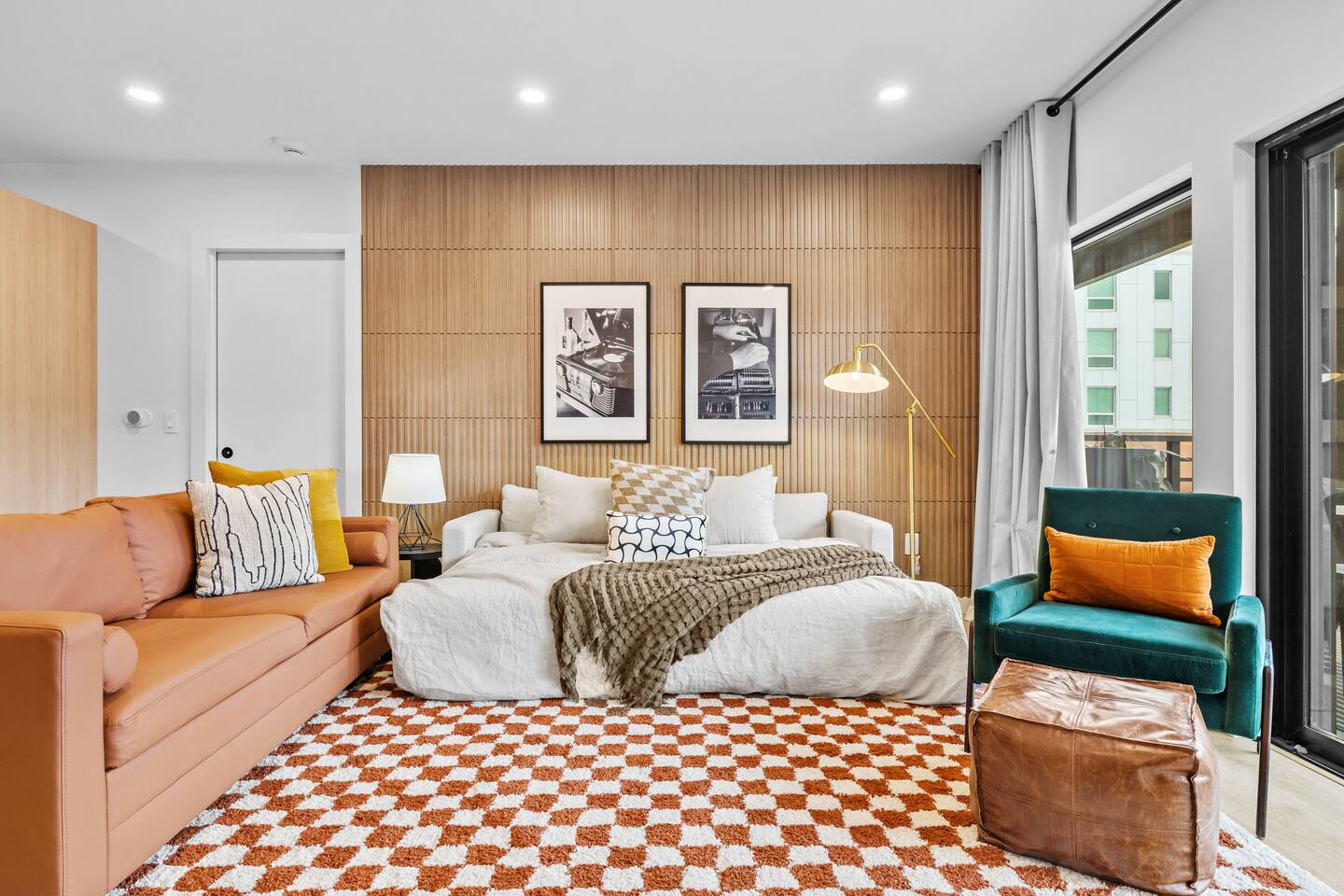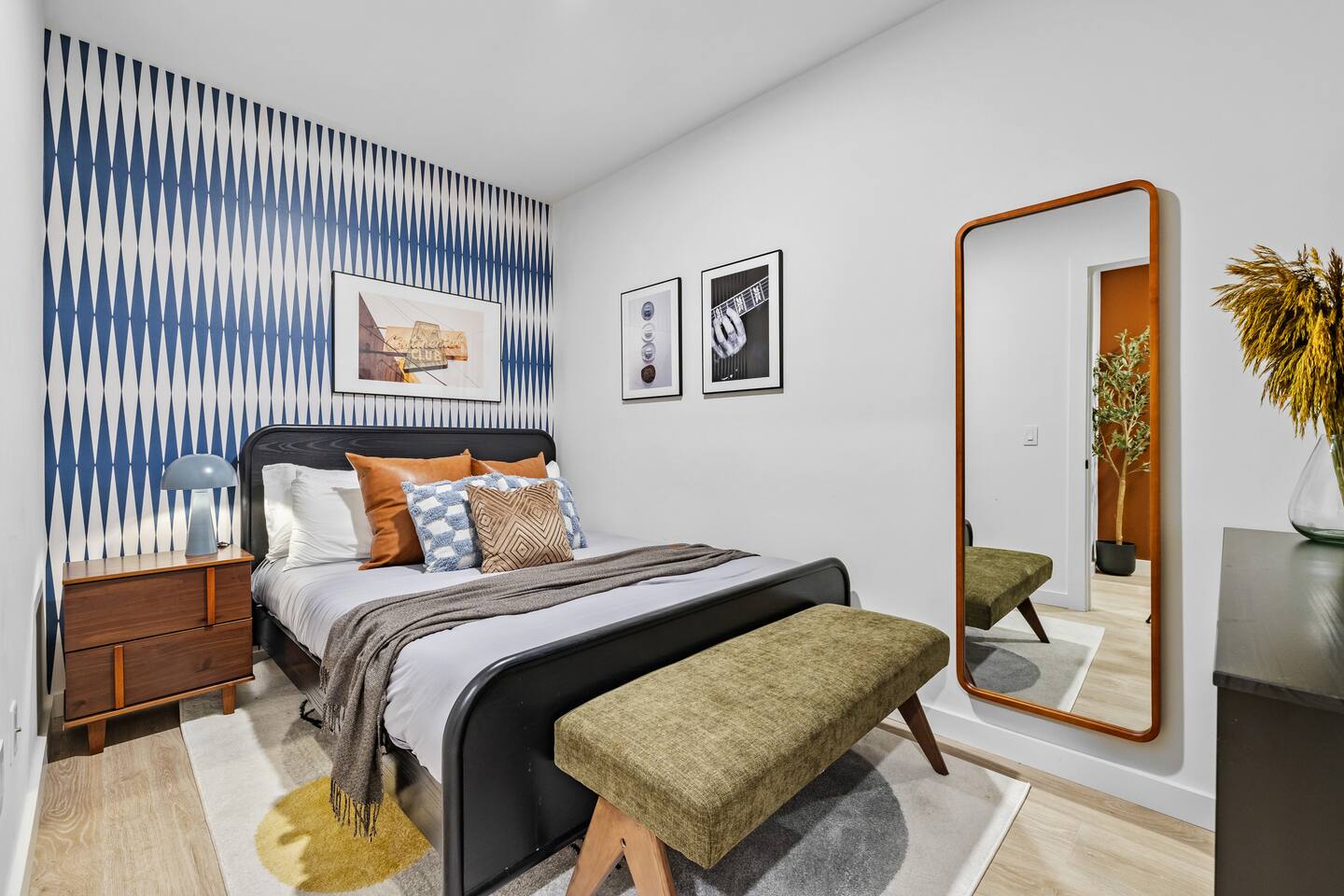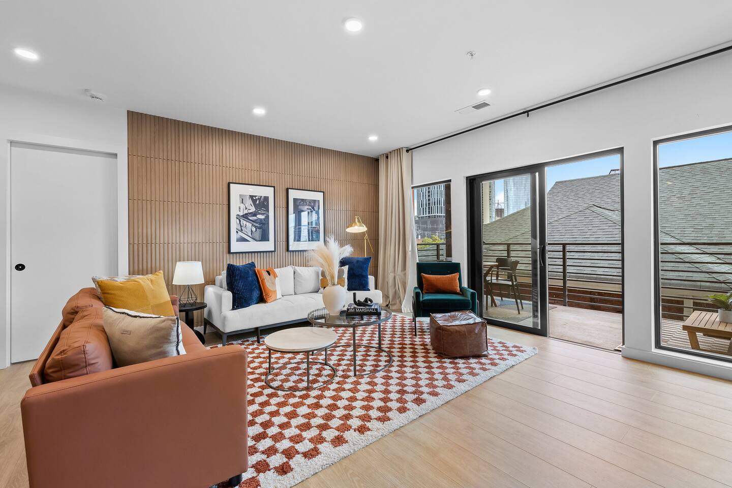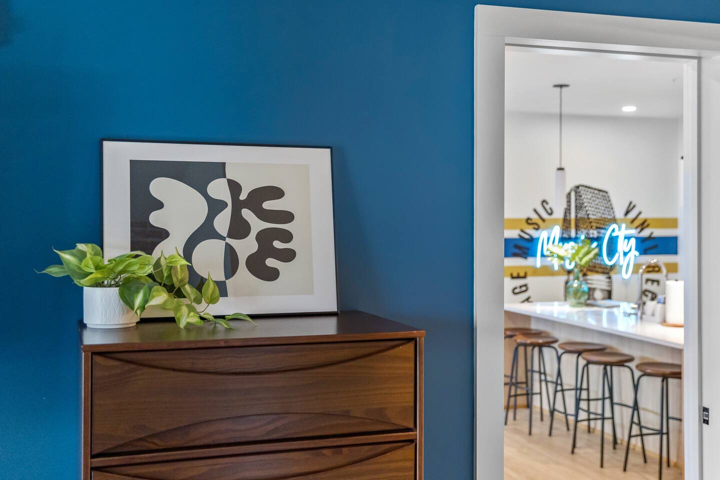 Stay in our beautiful 1,200 sq ft two bedroom, two full bathroom, luxury condo in the heart of downtown, close to everything! Professionally designed with a focus on style, comfort and Nashville's vibrant music scene. Your comfort is our priority. We provide all the amenities you need to feel at home. → Bedroom 1: King Bed w/ connected bathroom with dual vanities, spacious shower → Bedroom 2: Queen Bed w/ full bathroom just outside the door → Two Sleeper Sofas with full size mattresses in living room → Queen-size air mattress available for extra sleeping space → Black-out curtains throughout → Large Walk-in Closet in primary bedroom → Second bedroom hanging closet space located above washer/dryer → Bathrooms stocked with toiletries/hair dryers → Large private balcony with two seating areas → Kitchen stocked with essentials → Coffee bar → Huge 8 ft. quartz island with 5 barstools → Dining table with 4 chairs → Washer/Dryer in-unit → Cleaning Supplies → Iron / Ironing Board / Clothing Steamer / Hangers → 3 Smart TVs in living room (65”), primary bedroom (55”), and second bedroom (50”) → High-Speed WiFi over 600 Mbps Guest access & building amenities: ★ Outdoor pool ★ Courtyard with fire pits, seating areas, BBQ grill and ping pong table ★ Gym with Peloton bikes, dumbbells, weight machine, tread mills, and yoga area ★ FREE Gated Parking (49 spots first-come first serve, +30 additional paid parking available - ask for our discount code!) ★ FREE, on-site luggage storage available 10am-4pm, Thursday-Sunday ★ Lounge and co-working space ★ On-site building manager ★ On-Site 24-hour Security Just a short walk or ride to: ~0.7 Miles - Broadway & Honky-Tonks ~0.7 Miles - The Gulch (trendy shopping, amazing restaurants and bars) ~0.7 Miles - Bridgestone Arena ~1.2 Miles - Nissan Stadium ~0.6 Miles - Country Music Hall of Fame ~0.4 Miles - Music City Convention Center ~0.8 Miles - Ryman Auditorium ~0.8 Miles - Ascend Amphitheater ~0.5 Miles - Frist Art Museum ~0.5 Miles - What Lifts You Mural ~2.5 Miles - 12 South shopping & restaurants ~1.6 Miles - Music Row - Third Man Records and The Blue Room (next door!) - Countless restaurants, breweries, distilleries and bars - Coffee shops STR Permit#2023047043