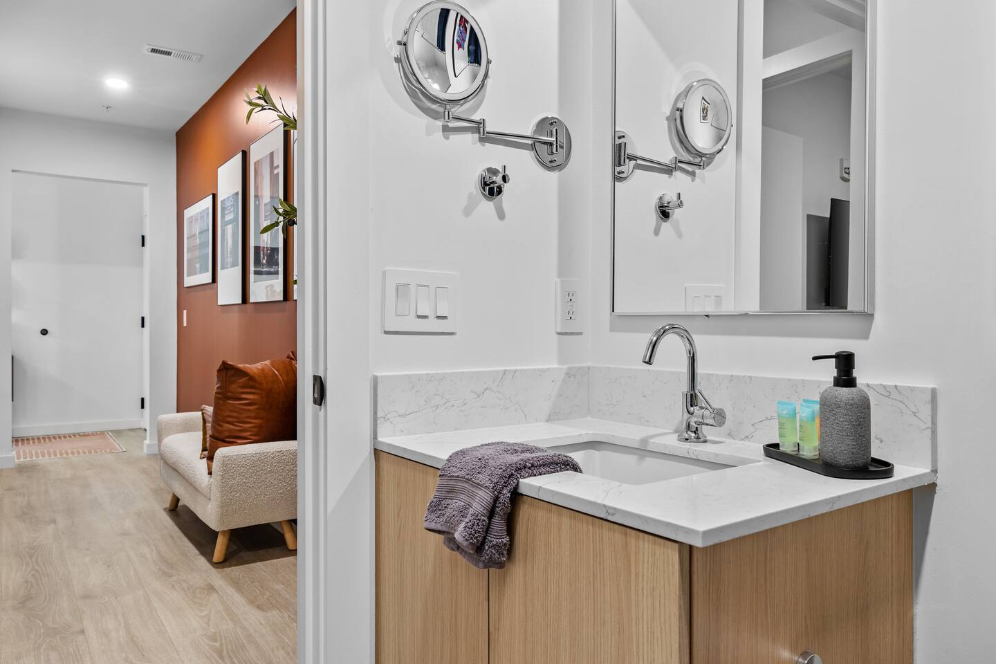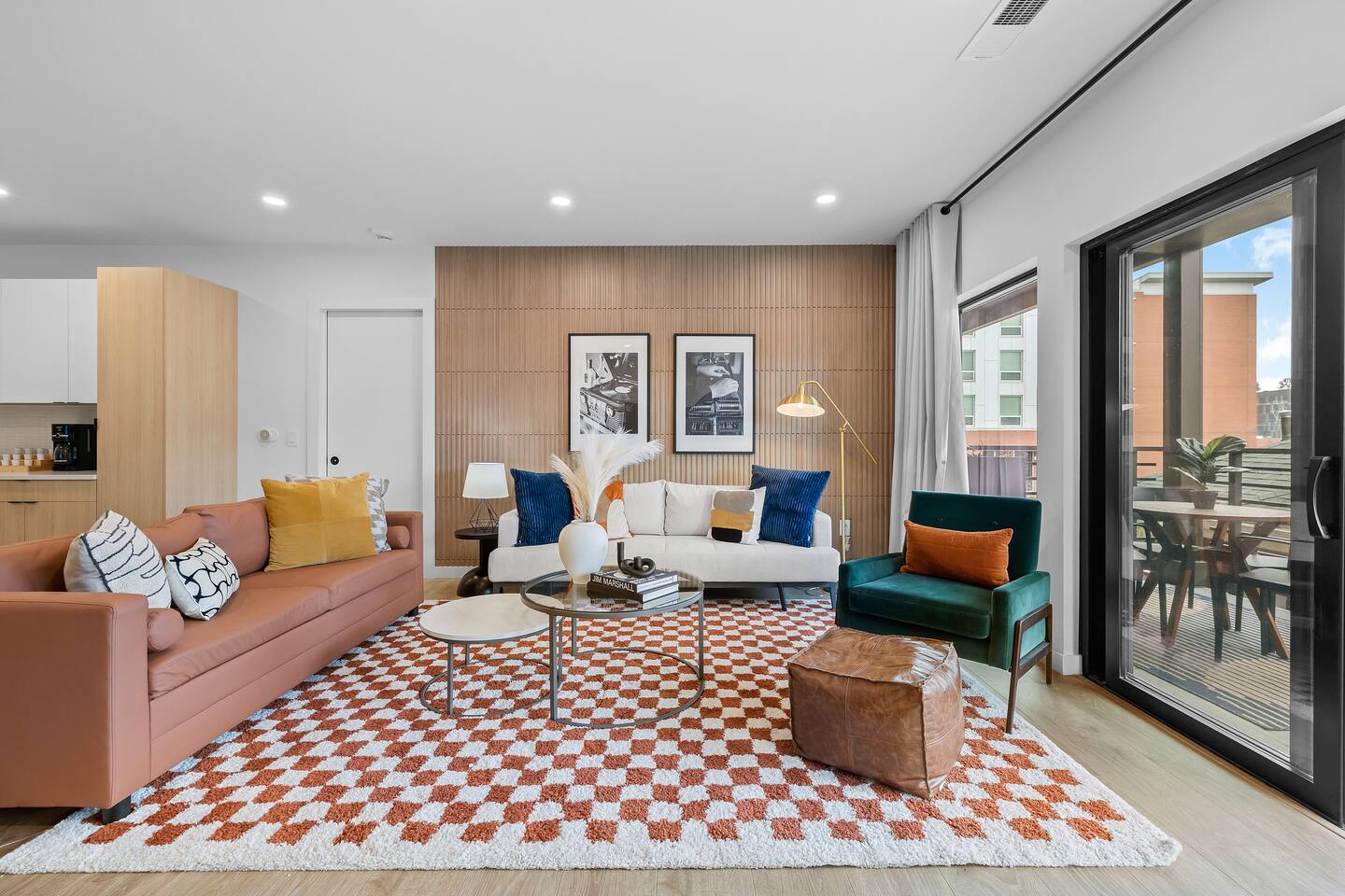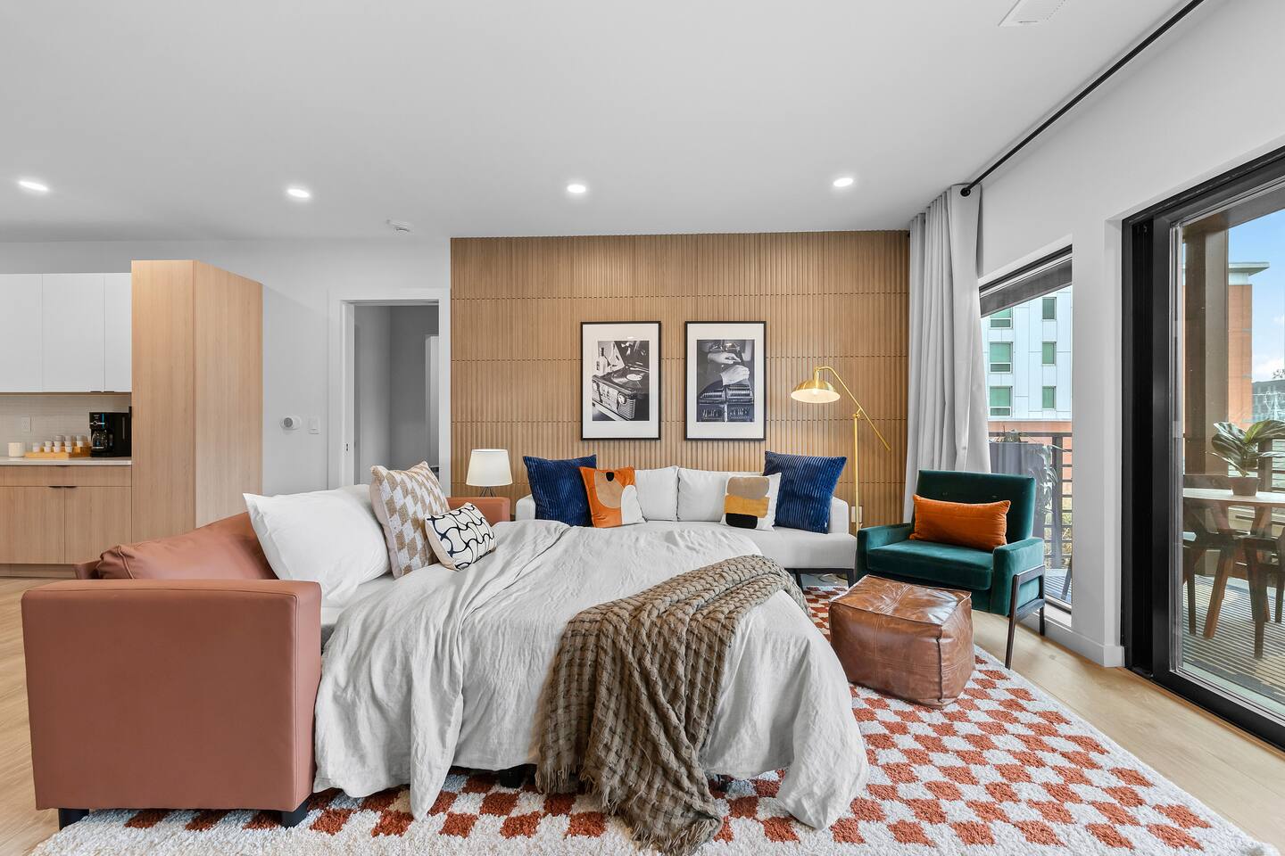 Guests have access to the entire condo, including the private balcony, community pool, gym, co-working space and the courtyard with BBQ grills and fire pits. You will use a keyless LATCH mobile app for secure entry to the building and unit. Safety & Property: Smoke alarm Carbon monoxide detector Exterior security cameras On-Site 24-hour Security On-Site Building Manager House Rules: Check-in after 4:00 PM Check-out before 10:00 AM No pets, no smoking, and no parties or events.